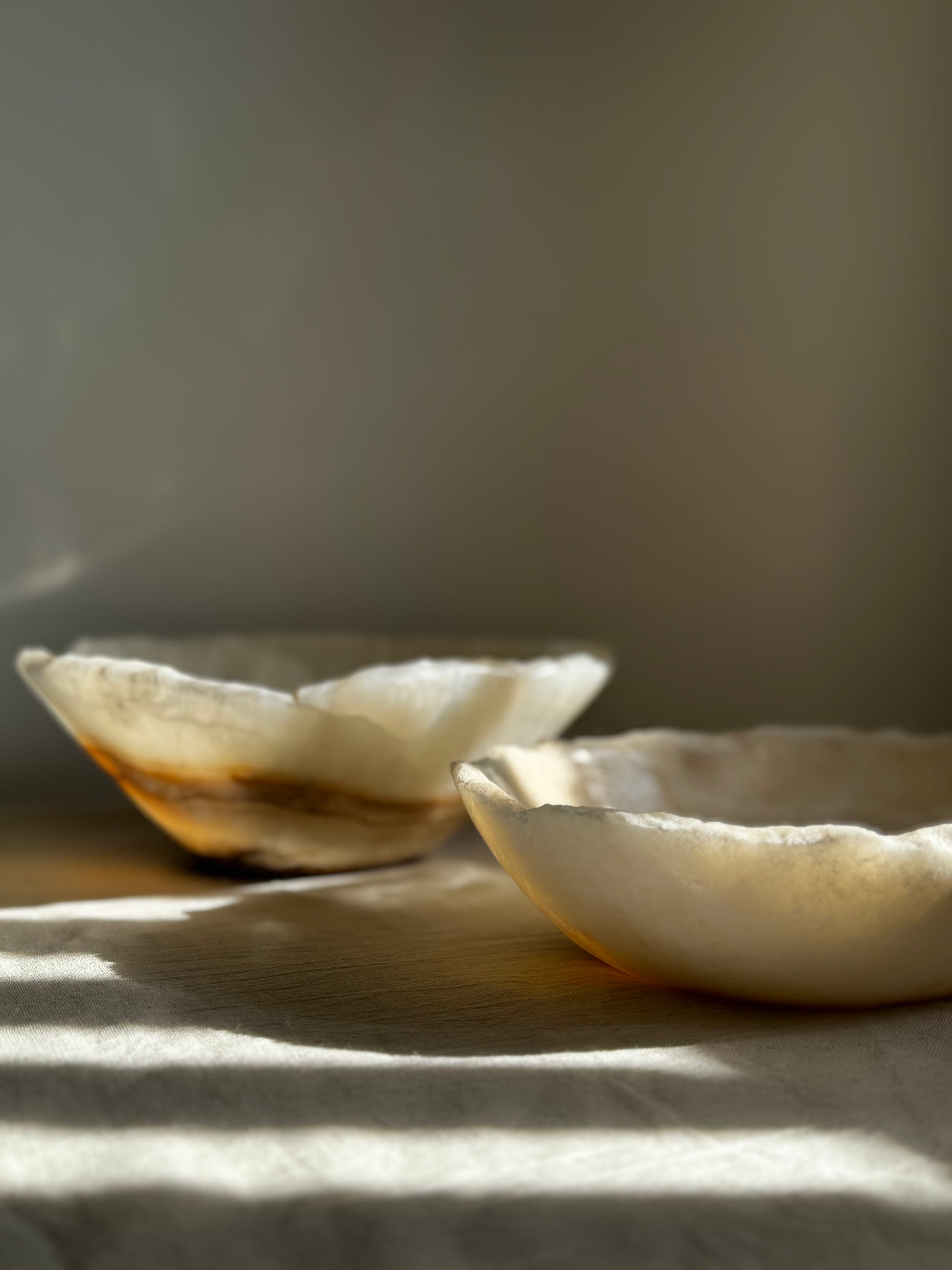 Whether displayed as a sculptural statement piece, a decorative accent, or a refined way to hold fruits, this Onyx bowl adds refined, handcrafted luxury to any interior.