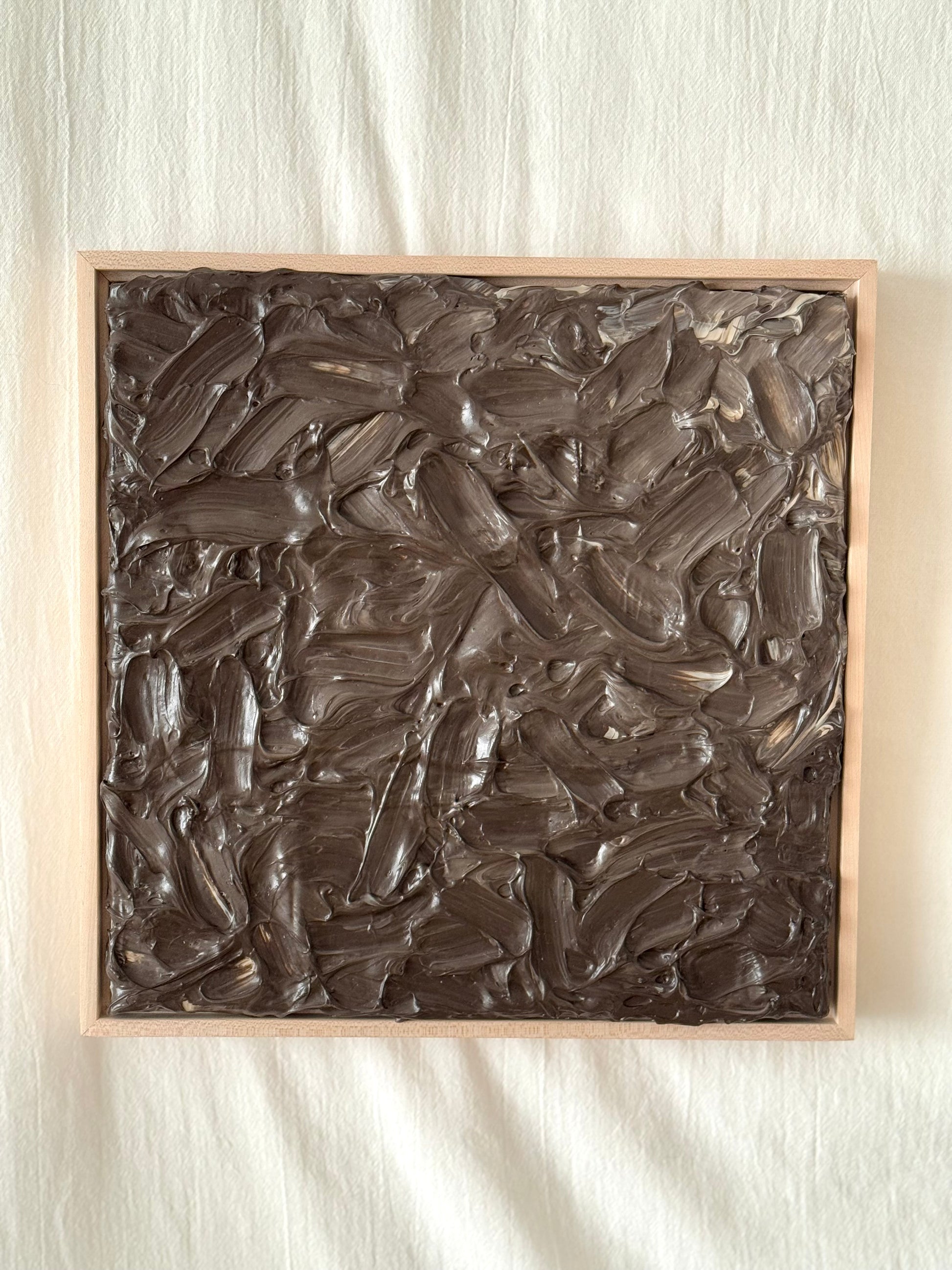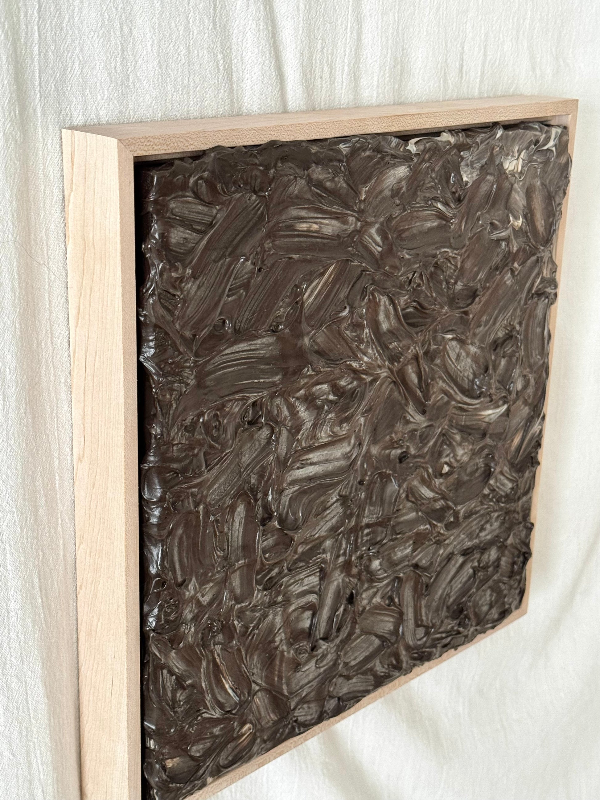 Birthday is a 12" × 12" framed abstract artwork from the Spark Collection, celebrating life, joy, and the people who make our days brighter. Layered in rich umber tones with lighter beige highlights, the bold, textured strokes give the surface a sculptural, almost “cake-like” presence.