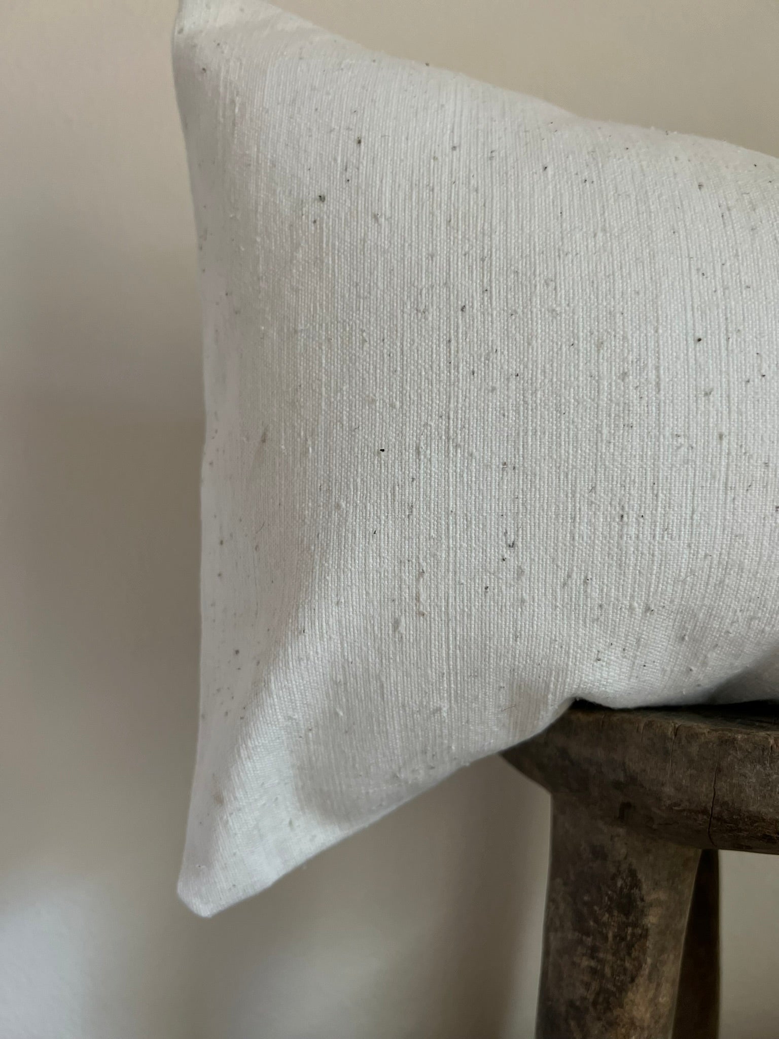 This Raw Cotton Pillow Cover is a one-of-a-kind piece, handmade in Turkey. Its smaller size makes it perfect as a lumbar pillow on a chair or as a unique layer in your pillow collection. The raw cotton texture and natural color variations give it an elegant yet earthy feel.