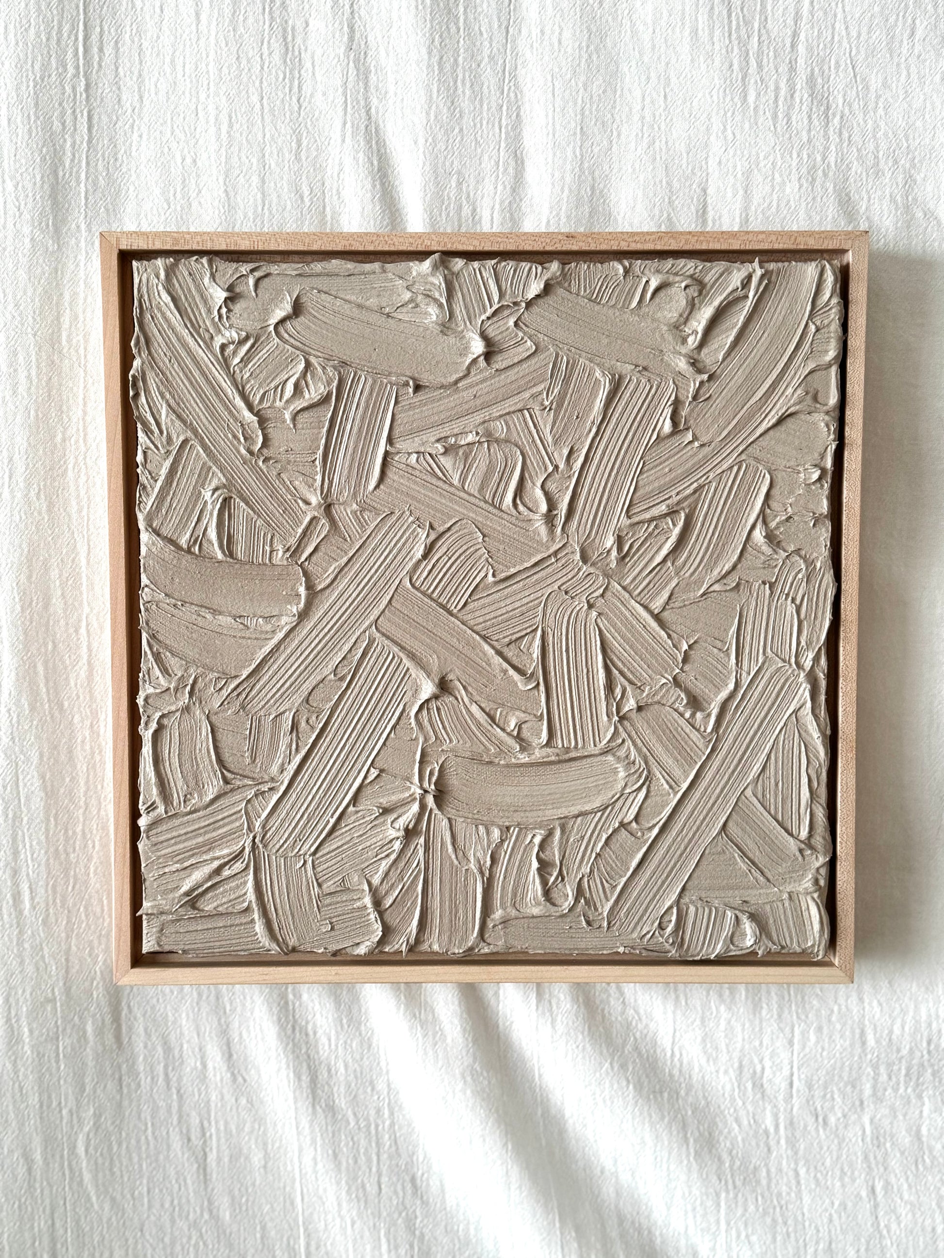 This 12" × 12" framed artwork features a matte finish, highlighting the depth, movement, and energy of each stroke. Its presence commands attention while inviting viewers to explore texture, color, and form, discovering their own interpretation within the work.