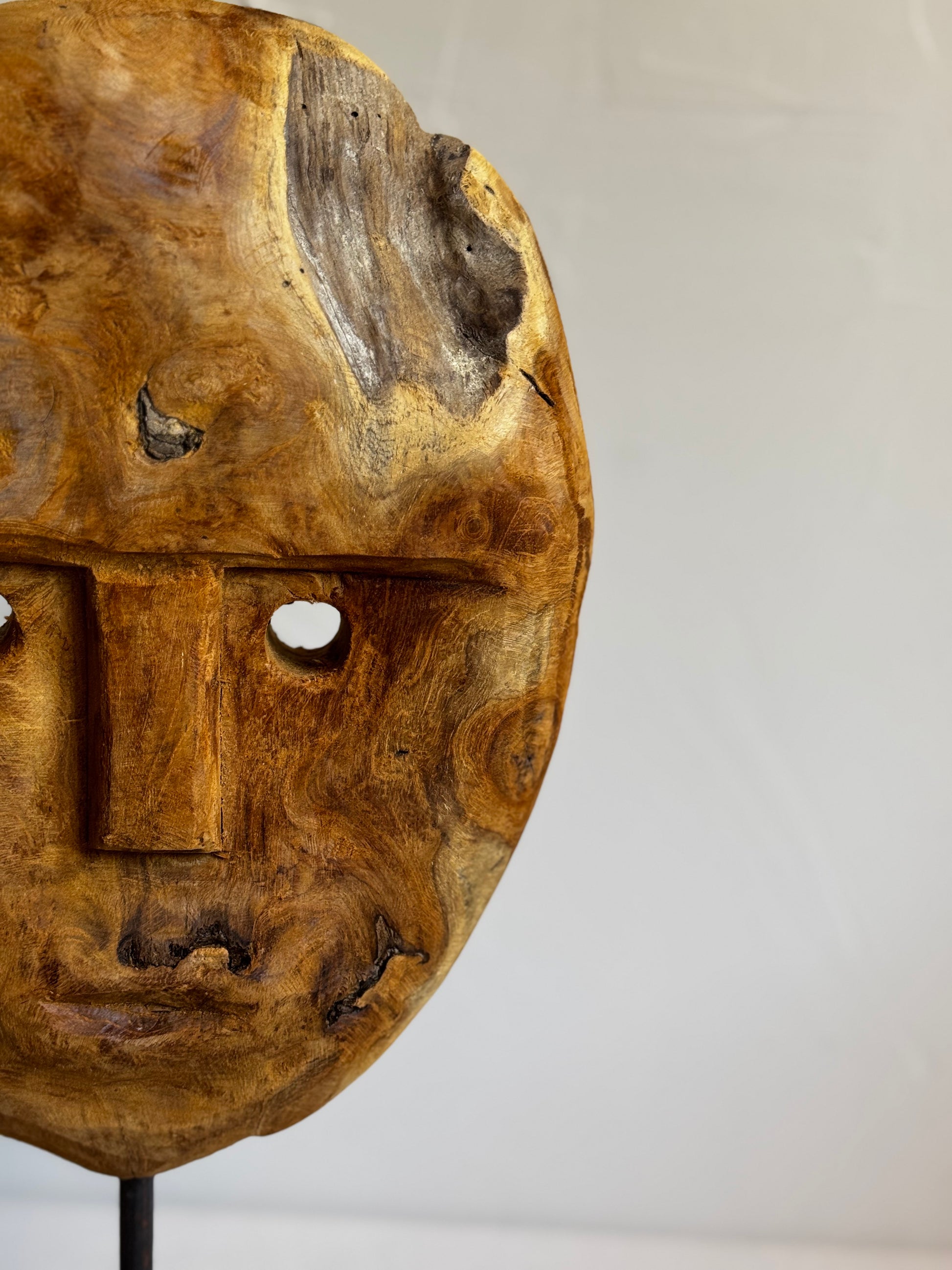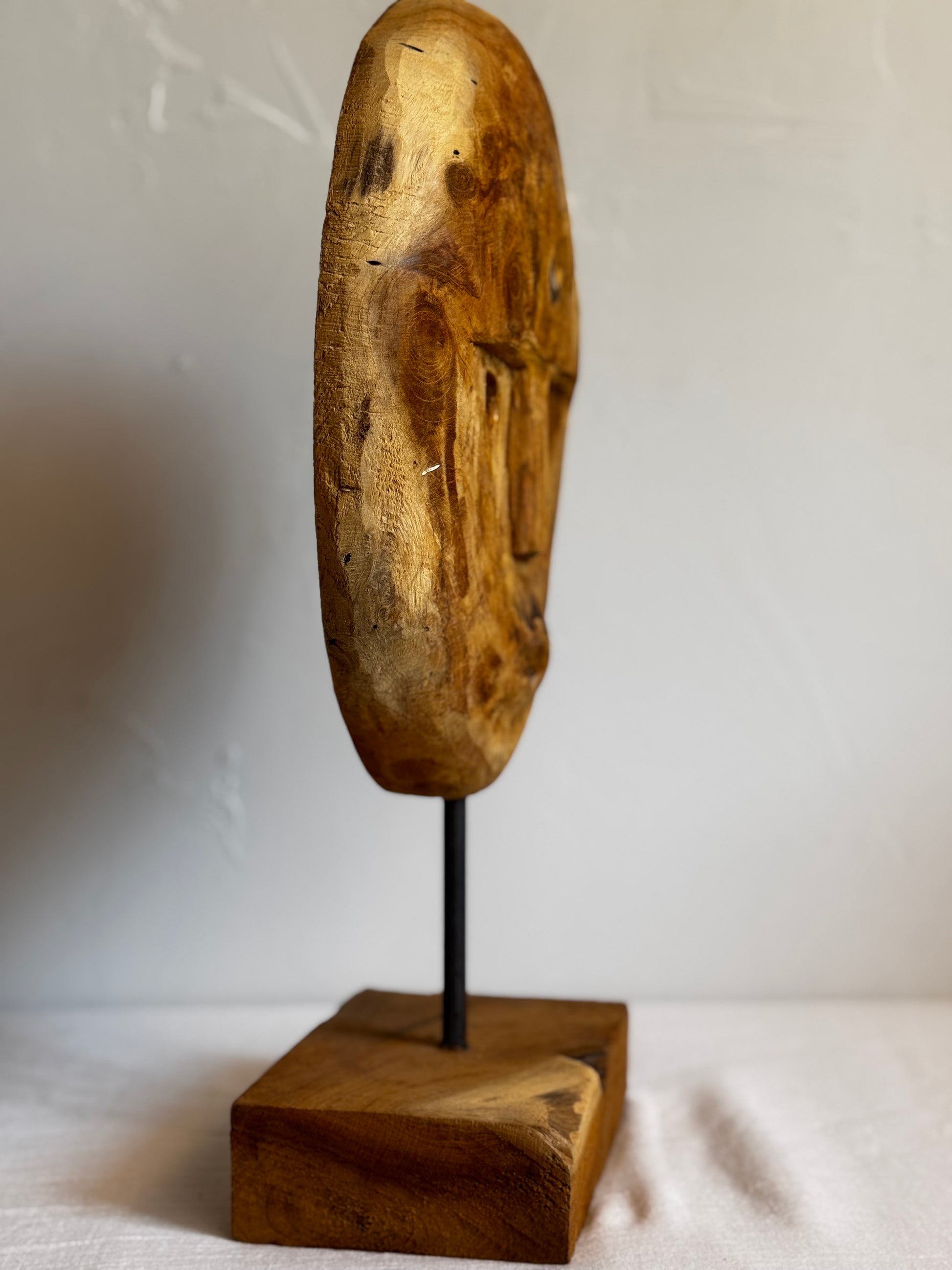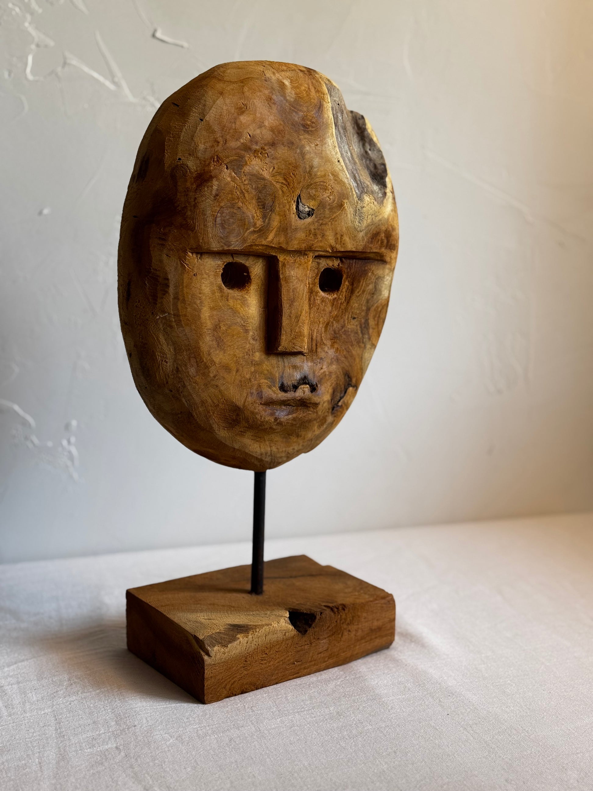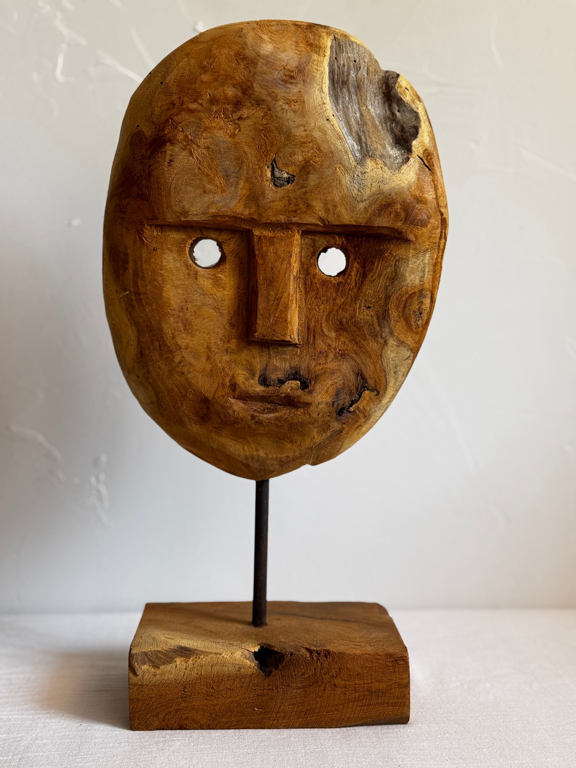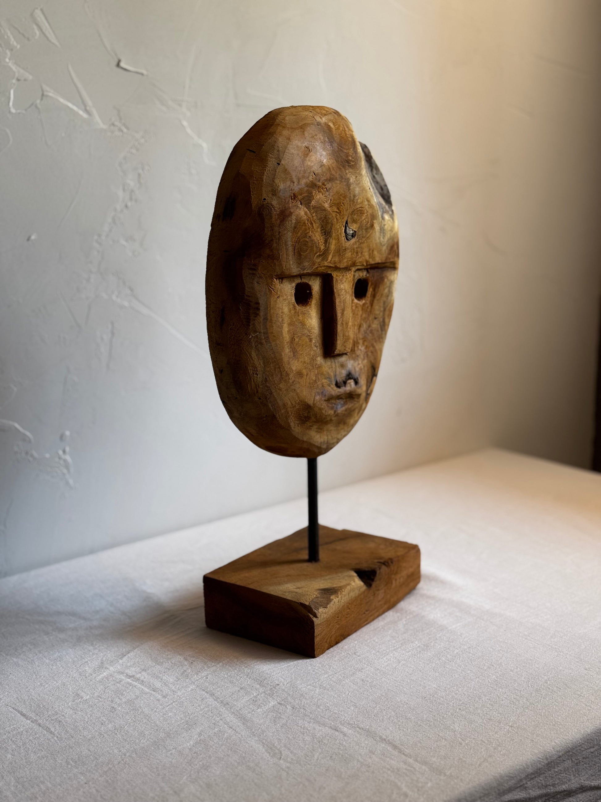 Handcrafted from reclaimed teak wood sourced from Indonesia, this Sumbanese mask sculpture is a one-of-a-kind piece that brings cultural richness and natural elegance to your space.