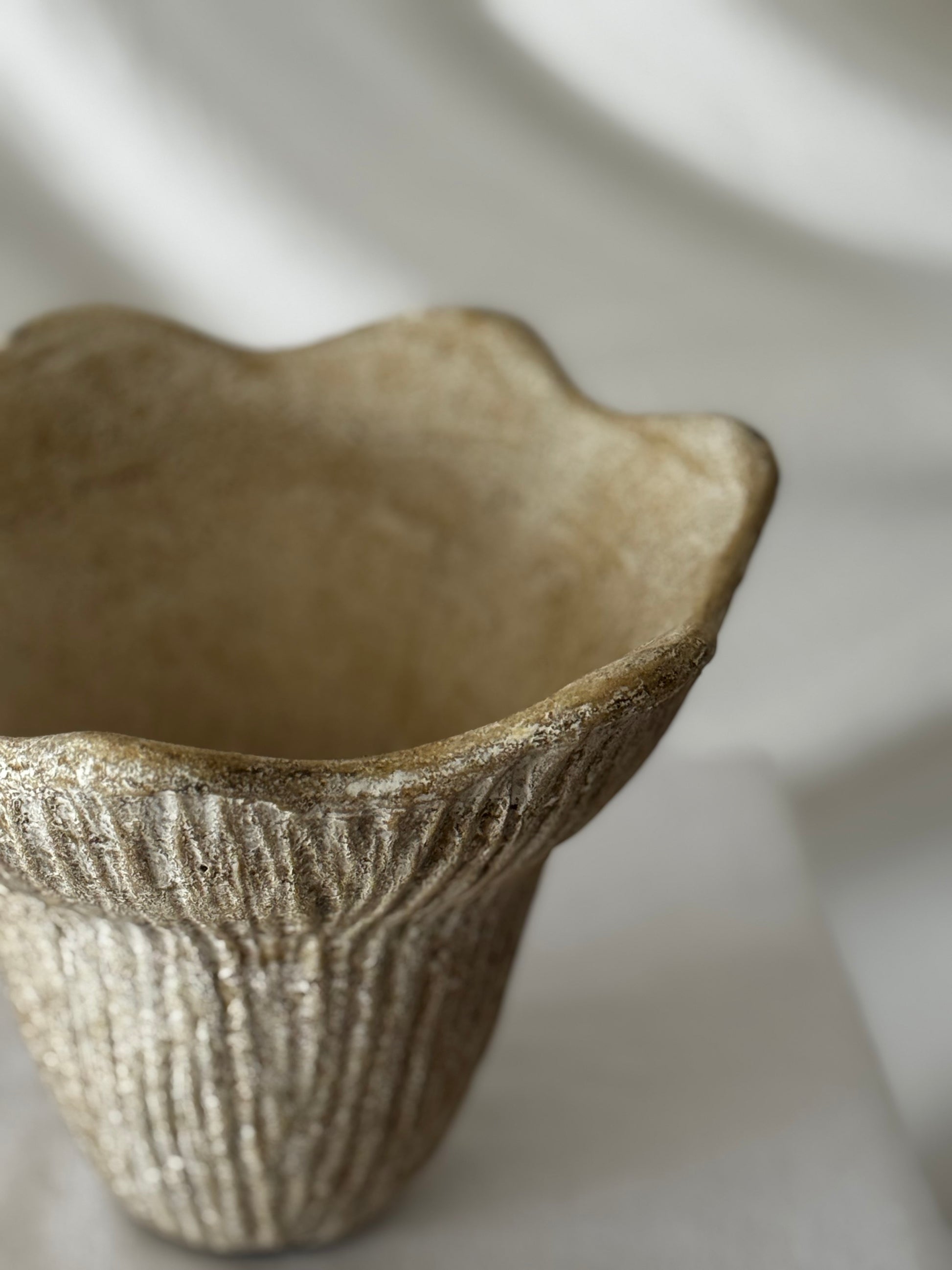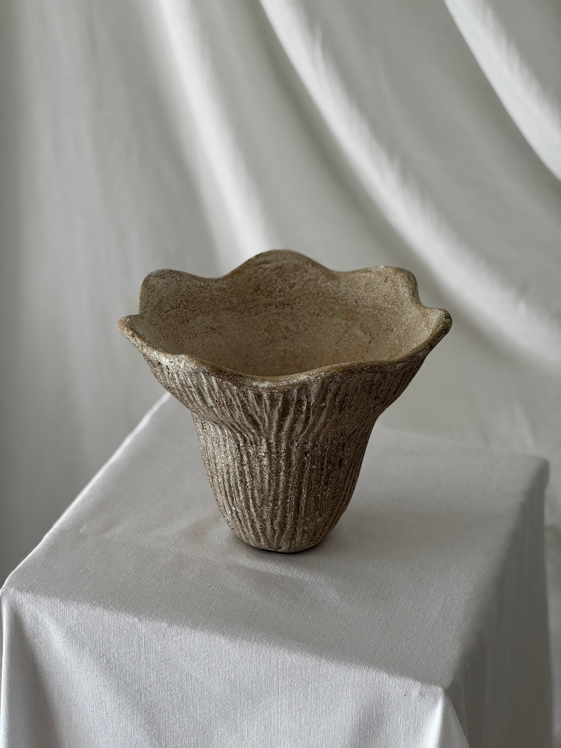 Inspired by the organic beauty of a blossoming flower, The Bloom Vessel brings natural elegance to any interior. Its ribbed, textured finish and gently flared edges create a graceful, sculptural silhouette full of movement.