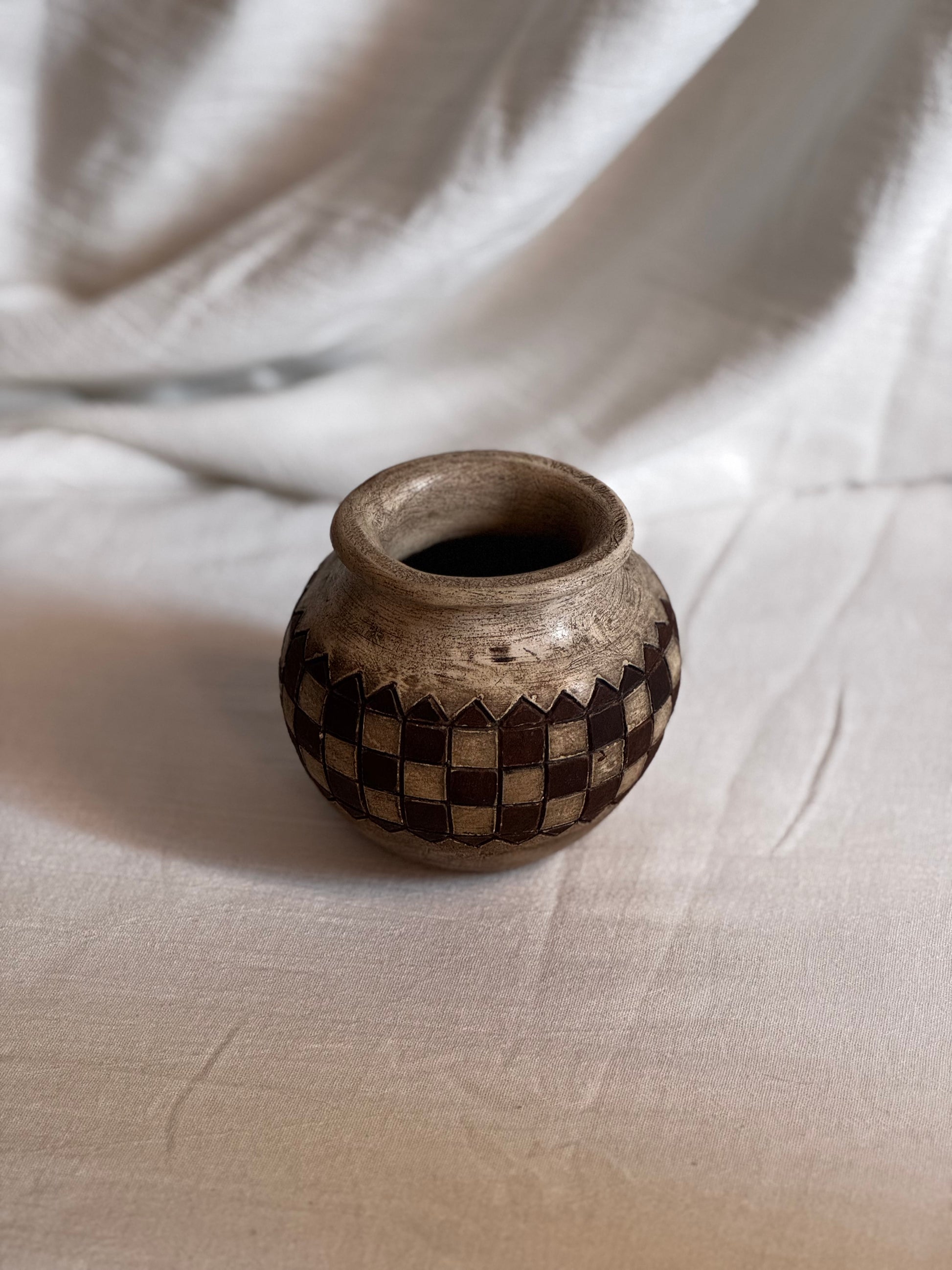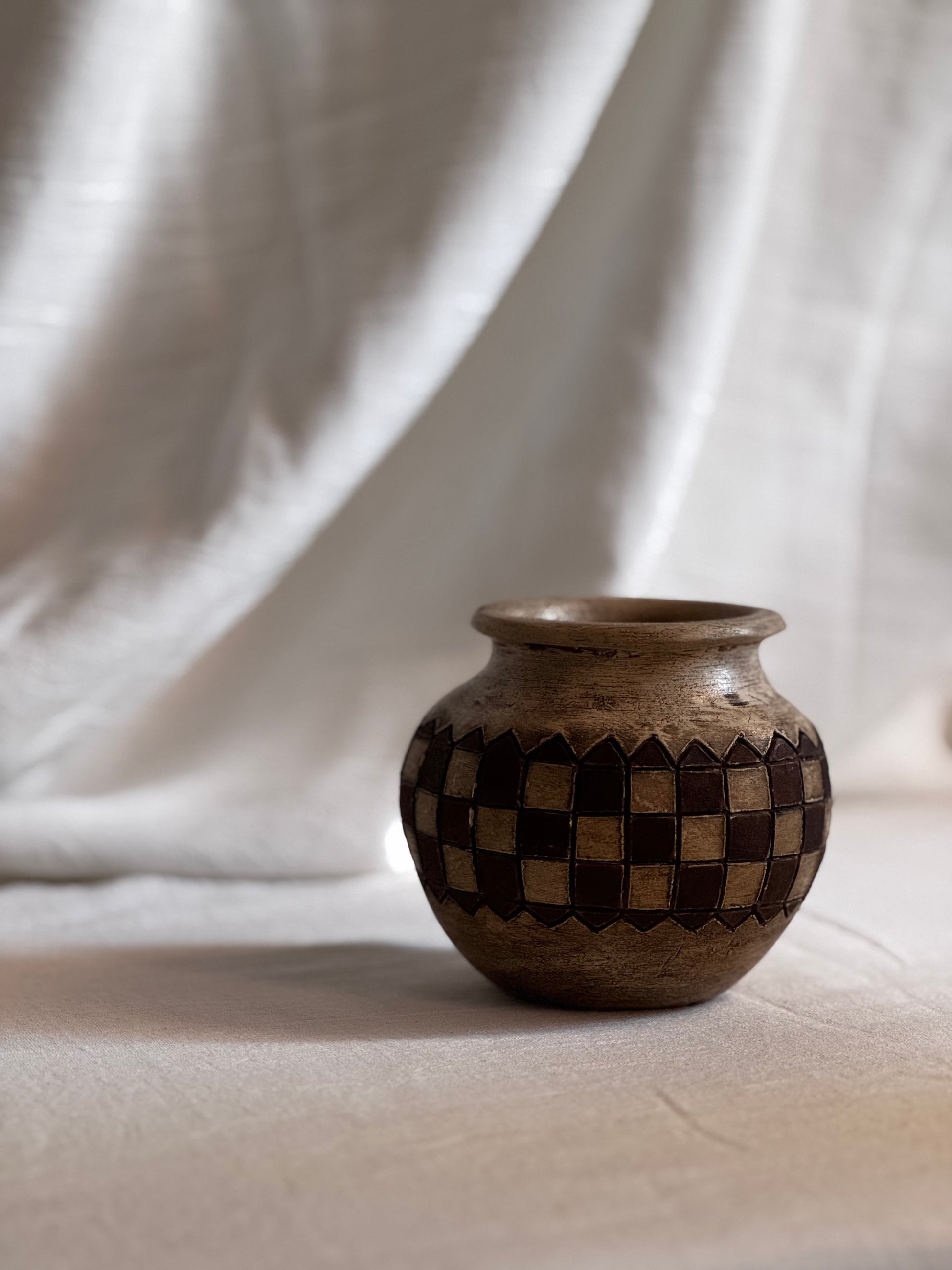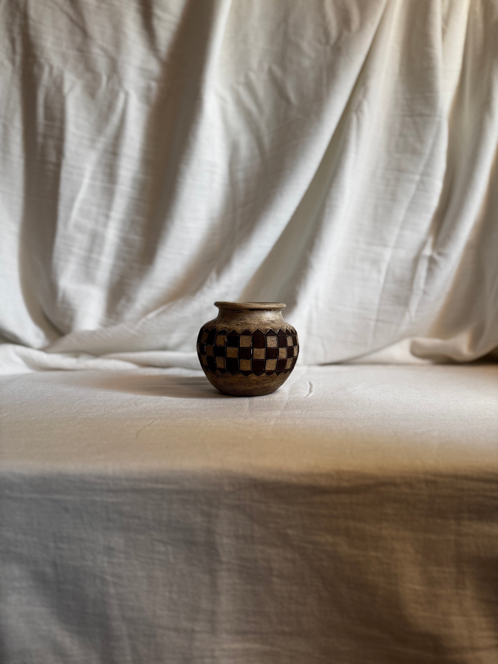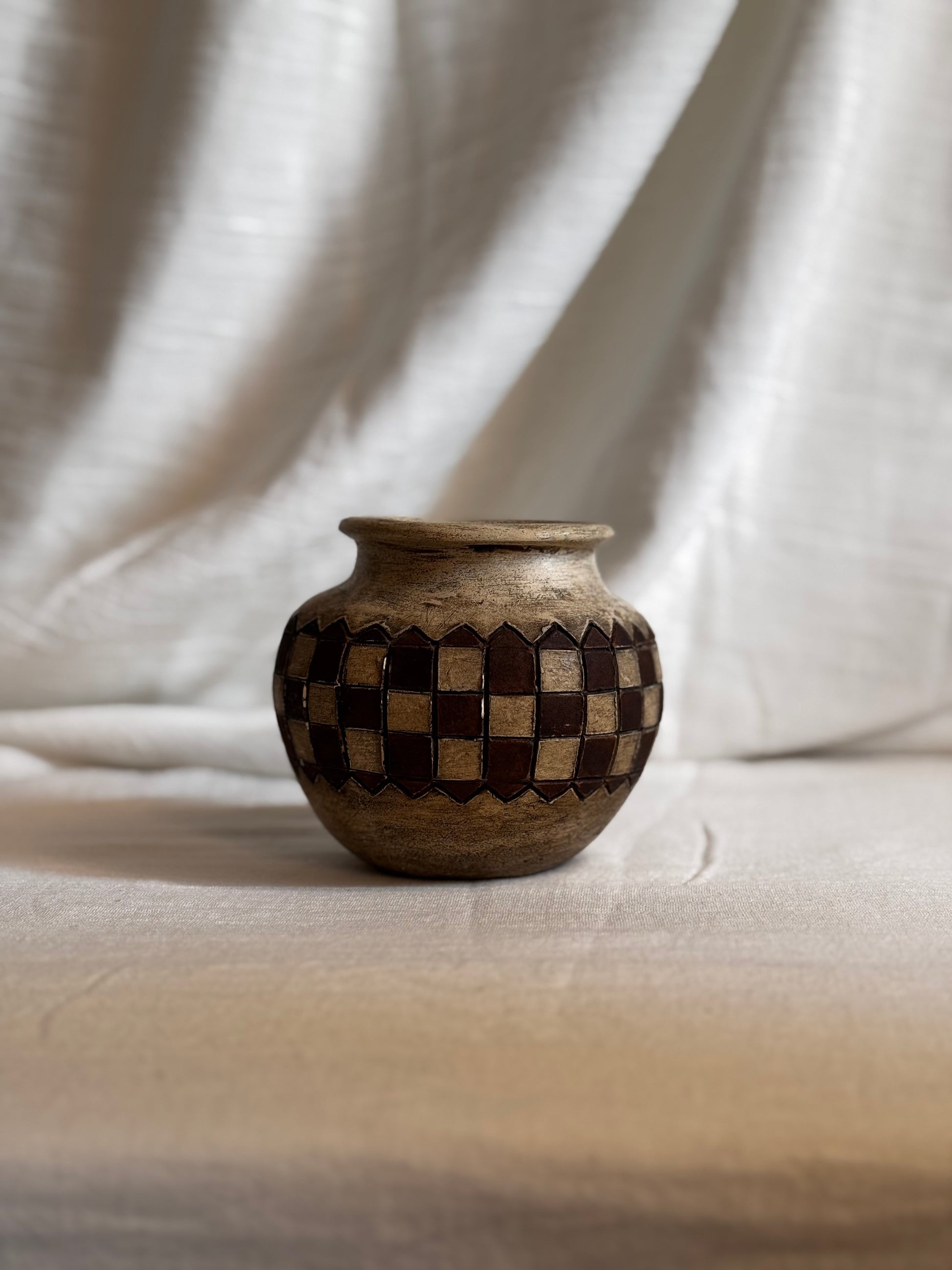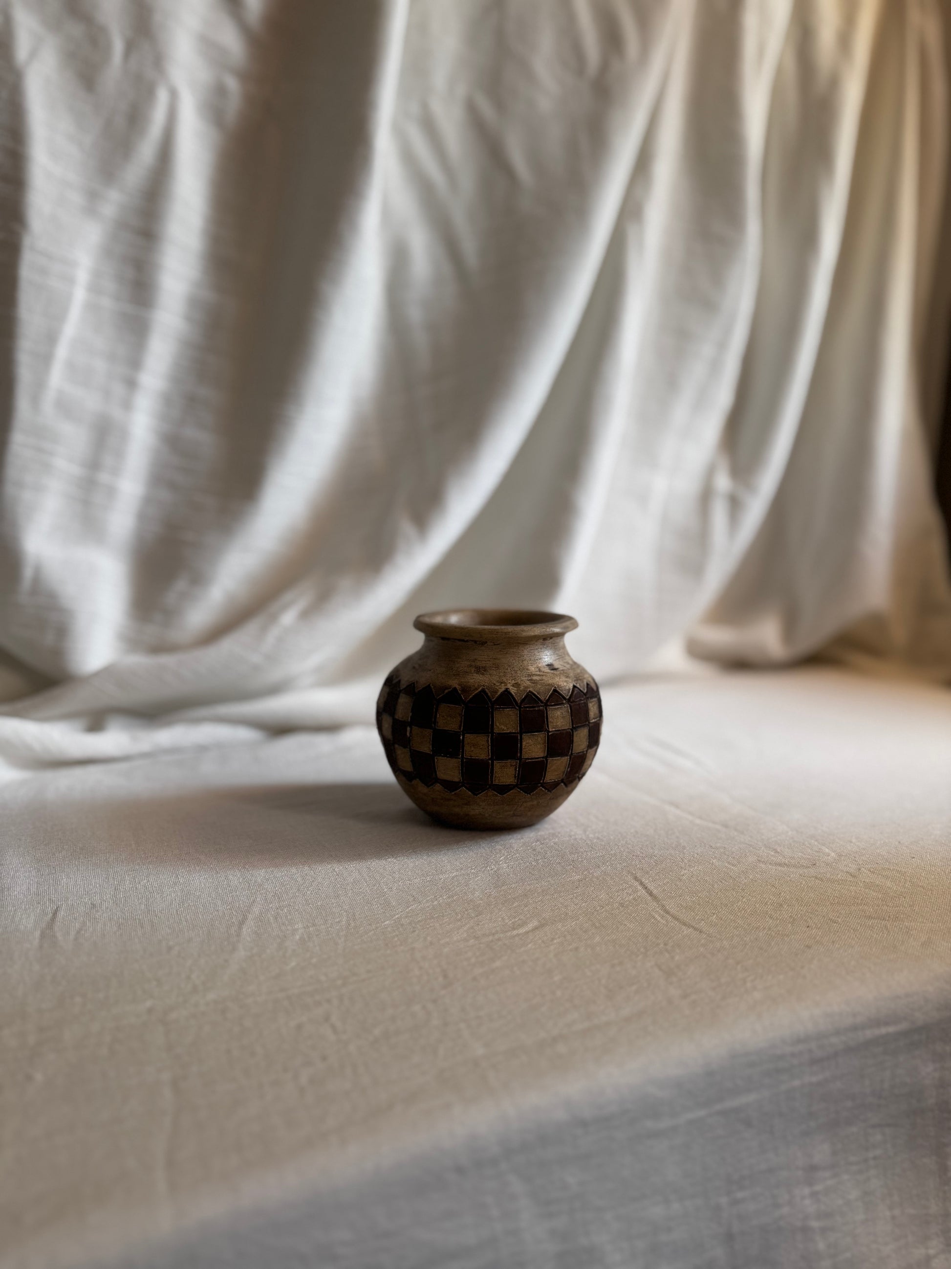 Add a touch of character and personality to your space with this Vintage Argentinian Pottery Vase. Handmade by Artisans from Northwest Argentina, this small vase features earthy tones and a checkered pattern.