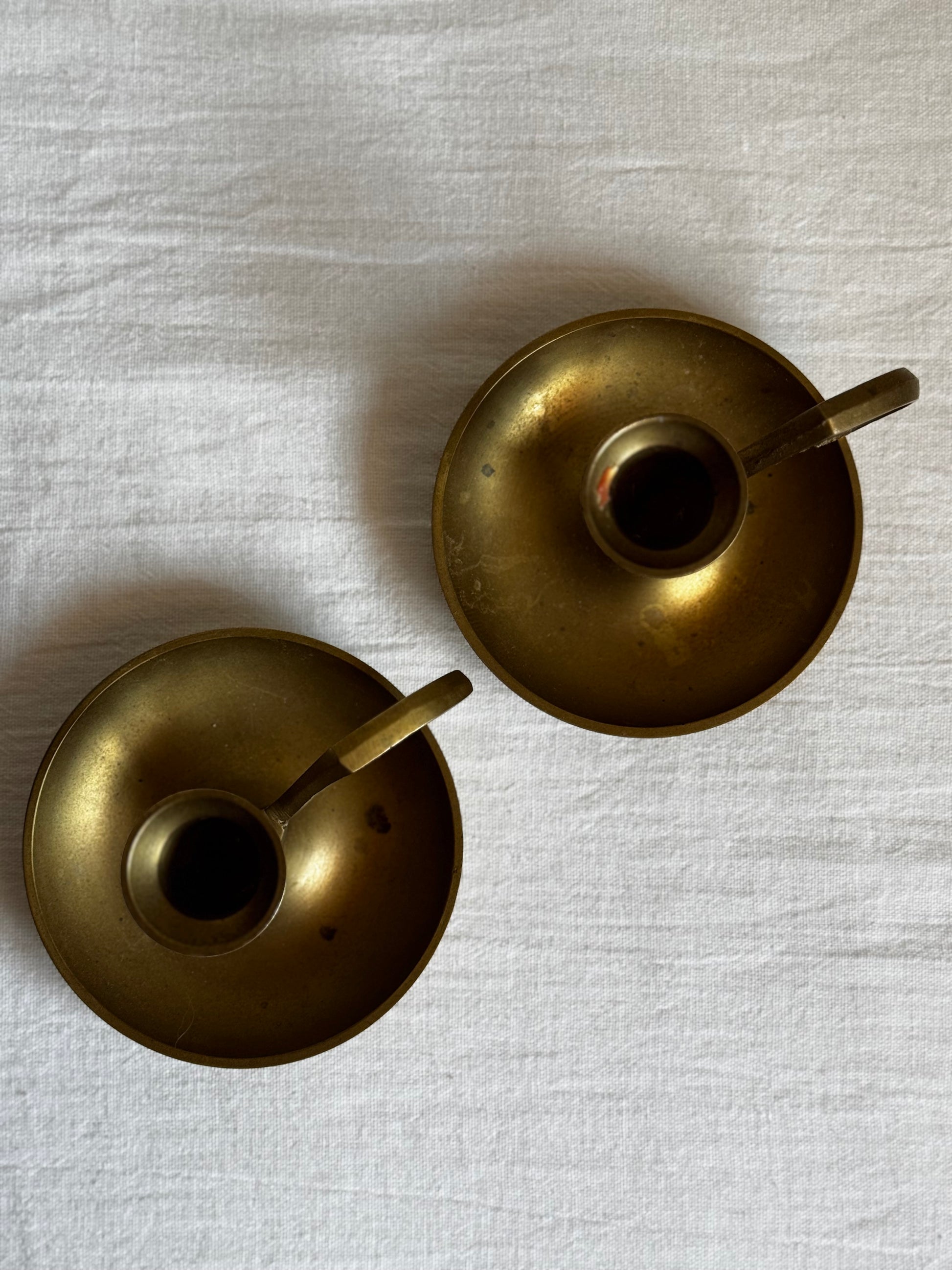 VINTAGE BRASS FINGER LOOP CANDLE HOLDER PAIR