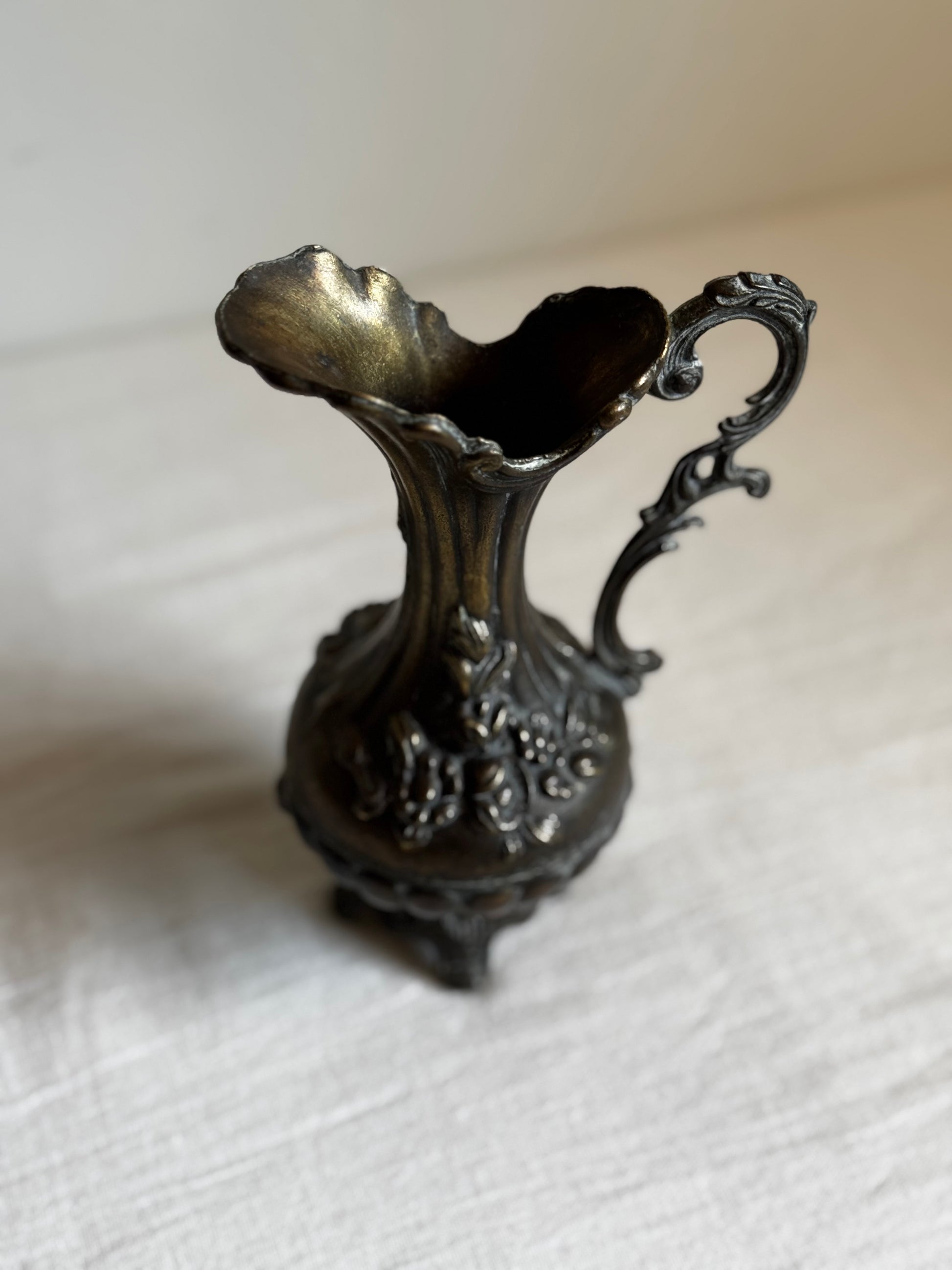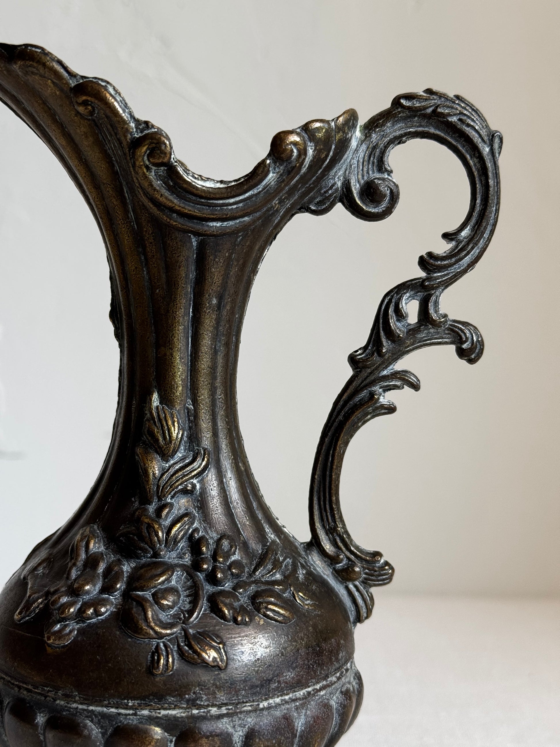 This stunning Italian vintage pitcher dates back to the 1920s–1930s and beautifully reflects the ornate floral design characteristic of Italian craftsmanship from that era. Made in Italy and crafted in brass, this piece functions as both a decorative vase and a collectible accent, showcasing timeless elegance and craftsmanship
