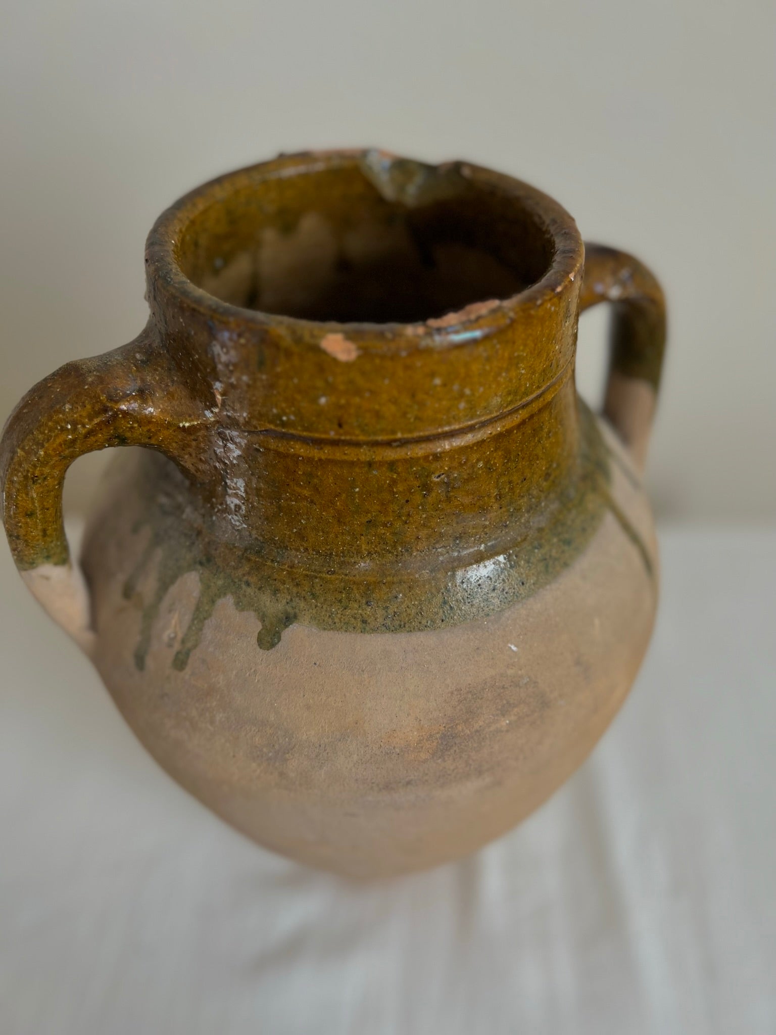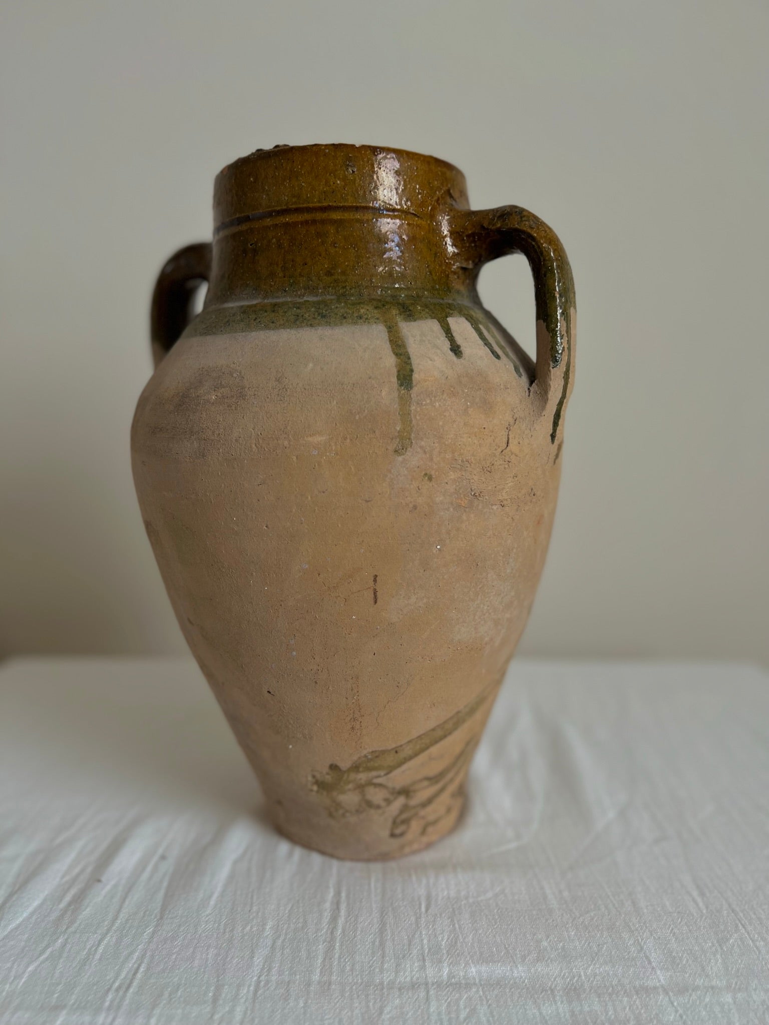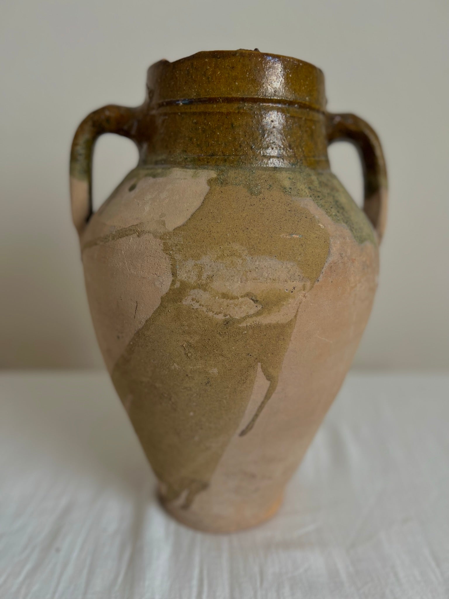 Handmade in Turkey, these vintage olive jars were once used to store and preserve olives across the Mediterranean. Their aged surfaces and classic forms bring rustic charm and history to any space.